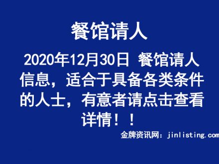 12月30日 餐馆请人