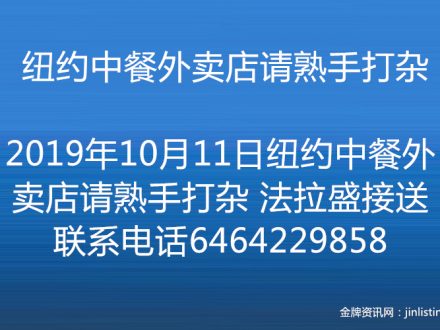台灣炒飯外賣店徵兼職打雜 929-234-9996