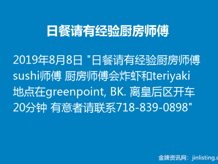 優薪禮聘-全职/兼职/工讀生 347-207-7951