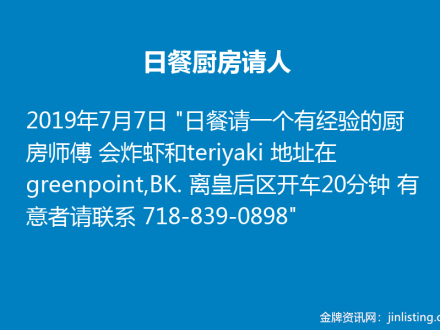 威廉斯堡 果汁奶茶店请人917-346-6033