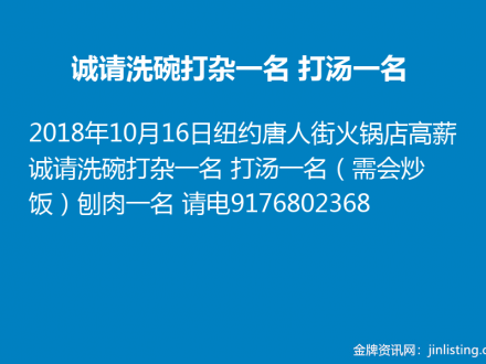 法拉盛餐馆请人