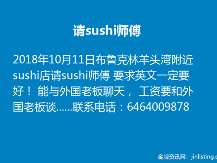 皇后区餐馆请人