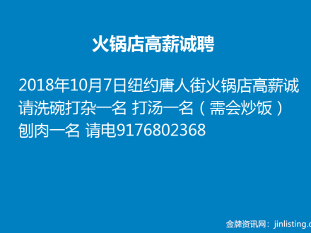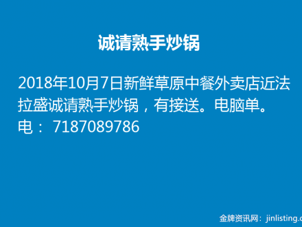 法拉盛餐馆请人