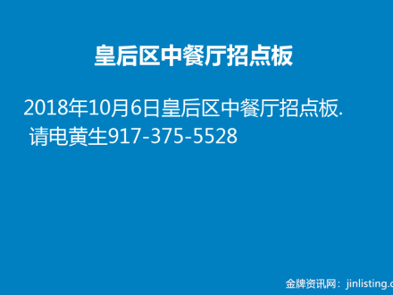 皇后区中餐厅招点板917-375-5528