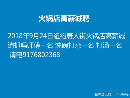 法拉盛餐馆请人