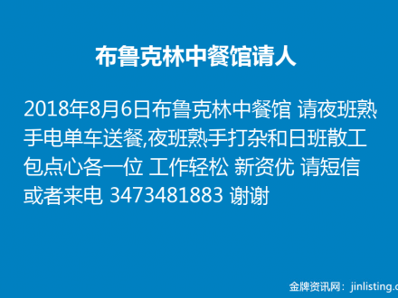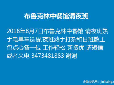 布鲁克林中餐馆请夜班3473481883