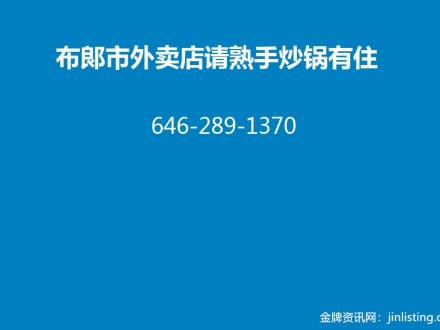 布郞市外卖店请熟手炒锅有住 646-289-1370
