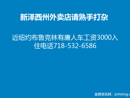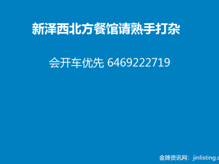 新泽西北方餐馆请熟手打杂 ,会开车优先 6469222719