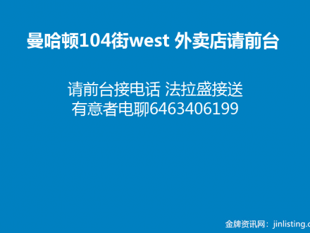 曼哈顿104街west 外卖店请前台接电话 6463406199