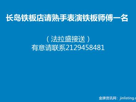 长岛铁板店请熟手表演铁板师傅一名 2129458481