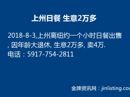新州日餐 年生意近200万 请英语电 917-365-6191