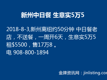 新州中日餐 生意实5万5 非诚勿扰 电 908-800-1894