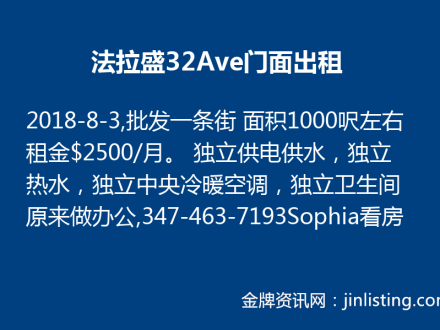 法拉盛32Ave门面出租,有意向者请联系347-463-7193