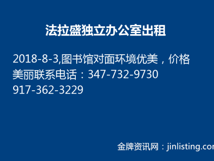 法拉盛图书馆对面有独立办公室出租,联系电话: 347-732-9730