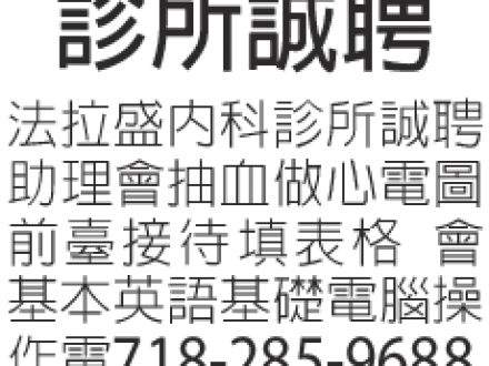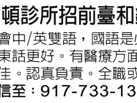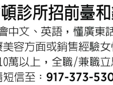 曼哈頓診所招前臺和銷售 917-733-1316 917-741-5060