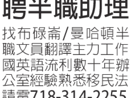 高薪诚聘- 法拉盛中心地产公司诚聘全职前台行政人员一名