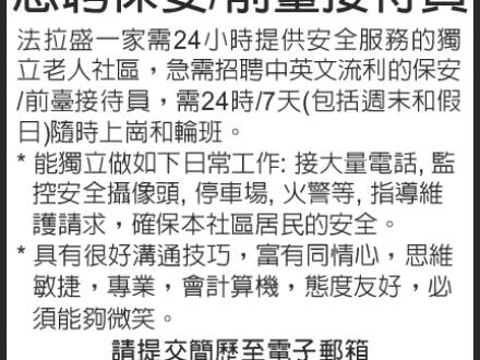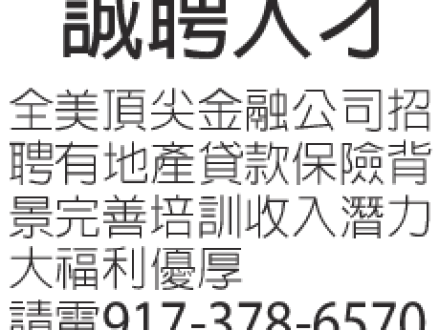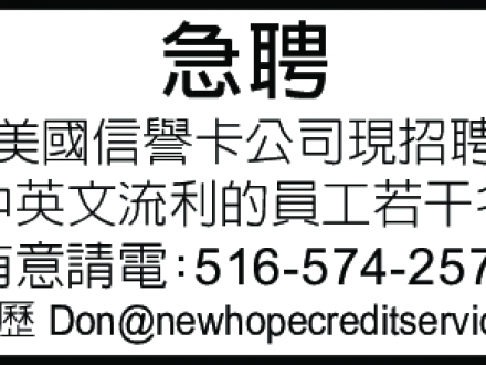 皇后区 招聘中英文流利的办公室文员,以及持有P&C 执照的保险经纪