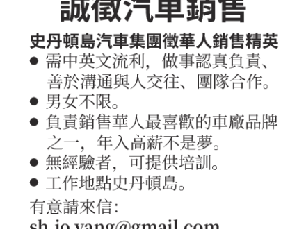 曼哈顿Chinamine贸易公司(服装)诚聘打包、分拣员2名