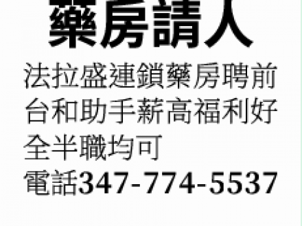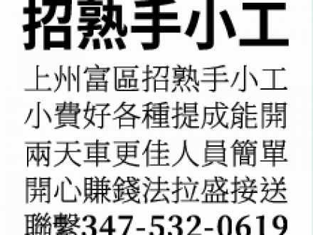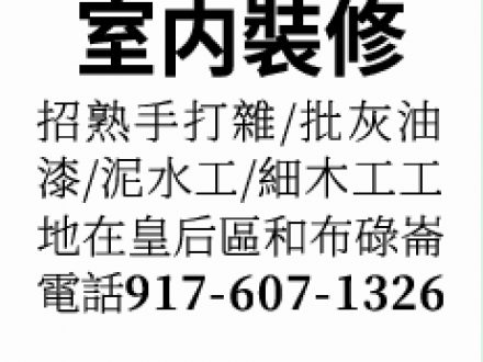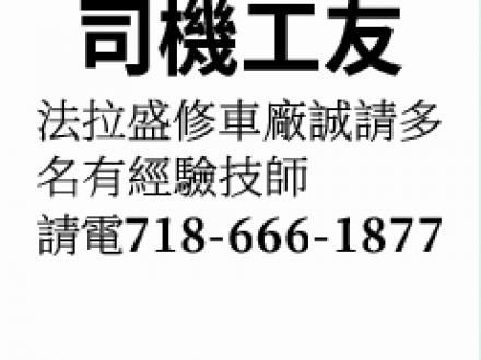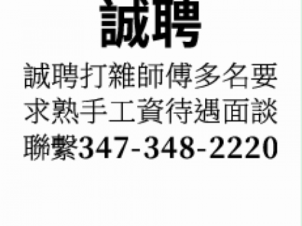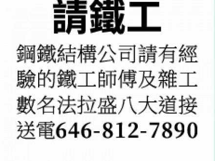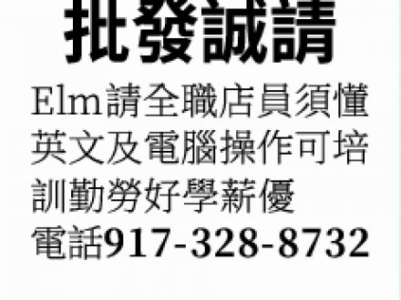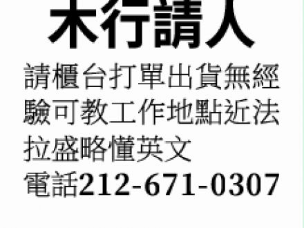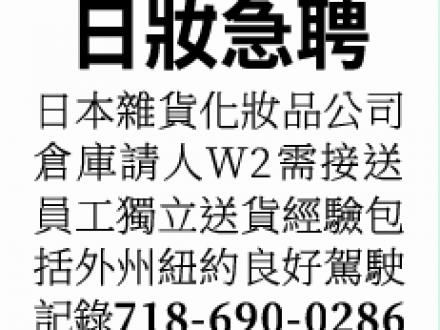法拉盛 大型建材公司聘请 仓库理货出货人员 数名