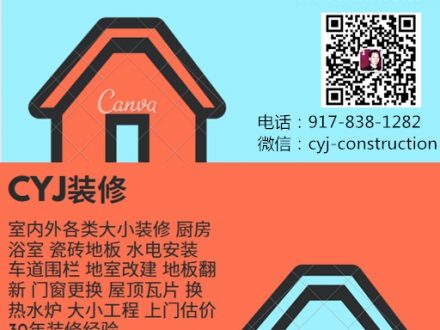 CYJ装修(917-838-1282):内外各类大小裝修 厨房浴室 瓷砖地板 水电安装 车道围栏 地室改建 地板翻新 门窗更换 屋顶瓦片 换 热水炉 大小工程 上門估價...