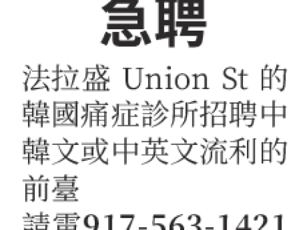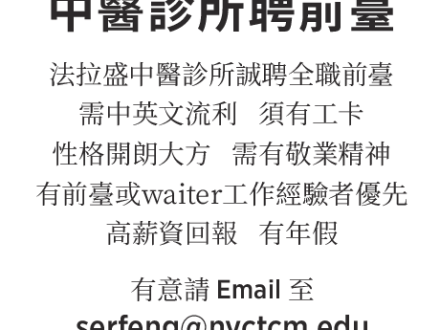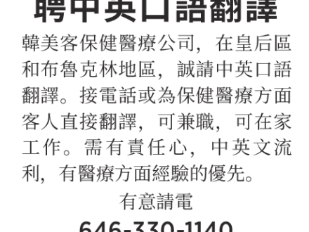 布鲁克林儿科诊所招聘全职或兼职医生助理/前台917-338-6688