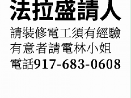新泽西招工/纽约上州招工/好工作/516-710-0911 长岛招工,法拉盛招工