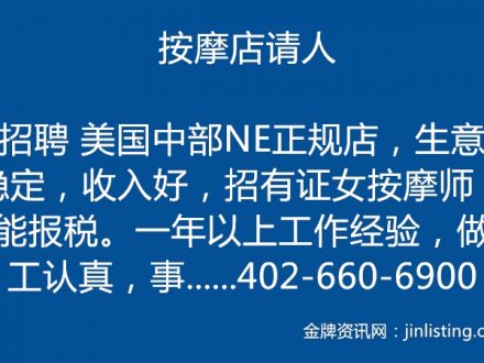 长岛食品集团诚聘经验会计师/ 办公室助理/ 电脑IT技术员/ 运输司机/ 切肉师傅【全职】857-272-2055...