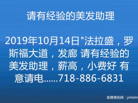 台灣炒飯外賣店徵兼職打雜 929-234-9996