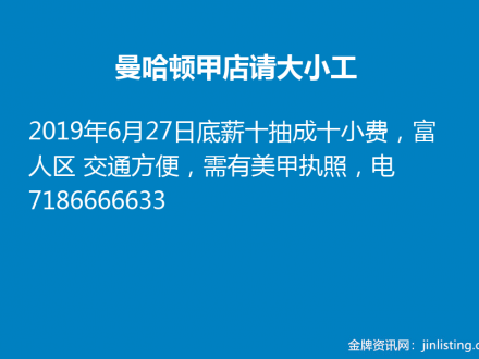 曼哈顿甲店请大小工 7186666633