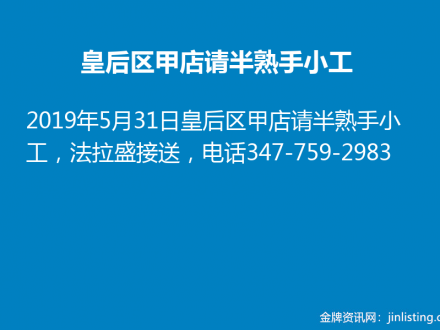 皇后区甲店请半熟手小工347-759-2983