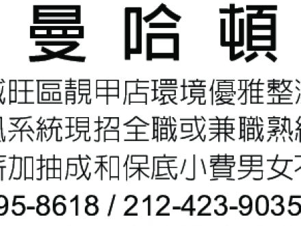 曼哈頓診所招前臺和銷售 917-733-1316 917-741-5060