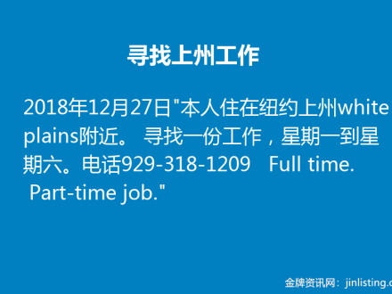 寻找上州工作 929-318-1209