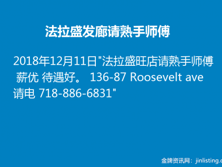 法拉盛餐馆請人
