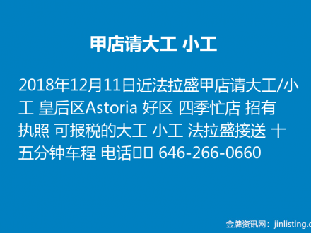 甲店请大工/小工 646-266-0660