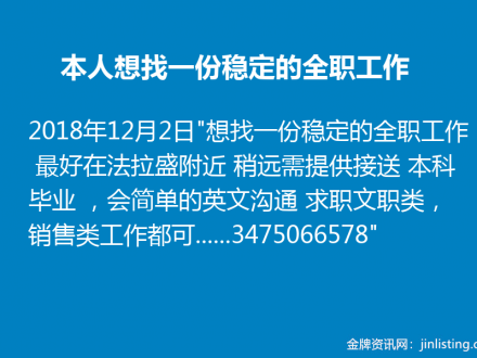 女 29岁 本人想找一份稳定的全职工作 法拉盛附近 非正规工作勿扰 347-506-6578