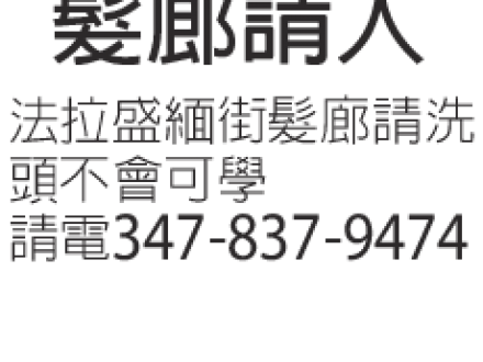 髮廊請人 347-837-9474