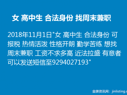 女 高中生 合法身份 找周末兼职 谢谢929-402-7193