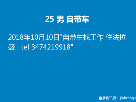 25 男 自带车 347-421-9918