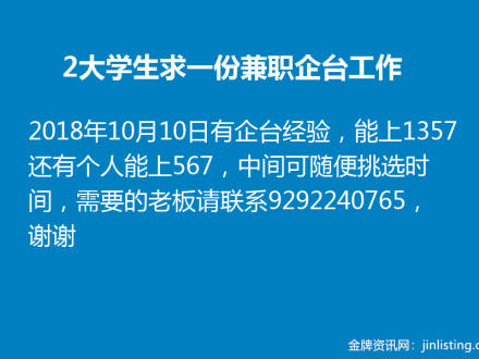 2大学生求一份法拉盛或曼哈顿的兼职企台工作,最好一起的929-224-0765
