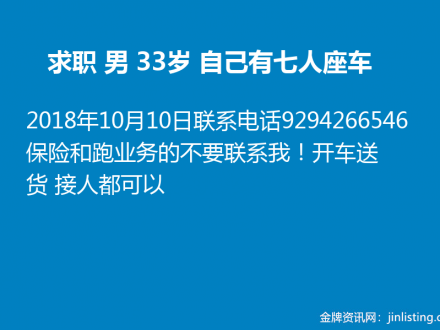 求职 男 33岁 自己有七人座车 纽约周边工作929-426-6546