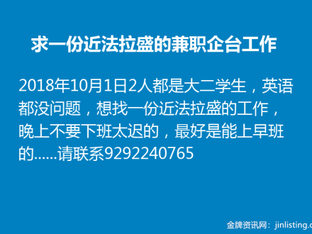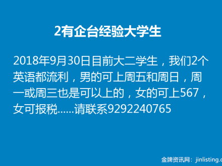 2有企台经验大学生求一份近法拉盛的兼职企台工作929-224-0765