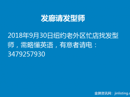费城郊区请sushi师傅,一个人做,一周六天,750/周。有意者电:9175130876。非诚勿扰,谢谢。...