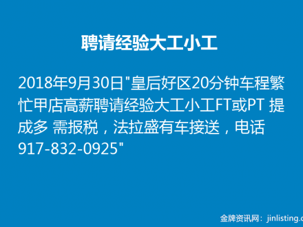 2有企台经验大学生请法拉盛的兼职企台929-224-0765