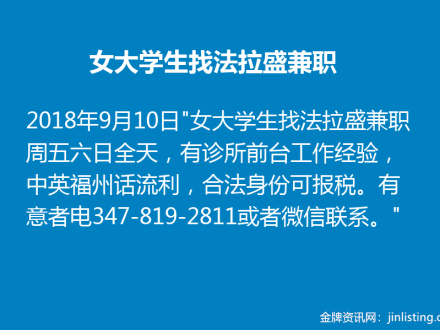 女大学生找法拉盛兼职周五六日全天 347-819-2811