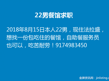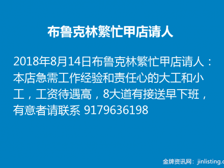 纽约唐人街火锅店诚招熟手打杂一名 9176802368