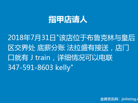 Brooklyn 布鲁伦 繁忙指甲店转让917-318-8989