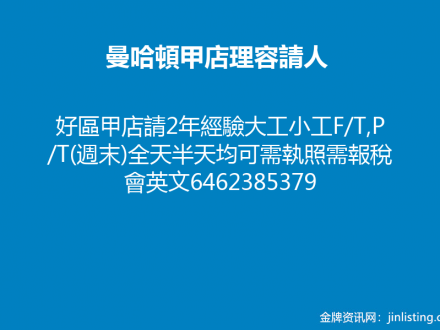 曼哈頓甲店理容請人 646-238-5379