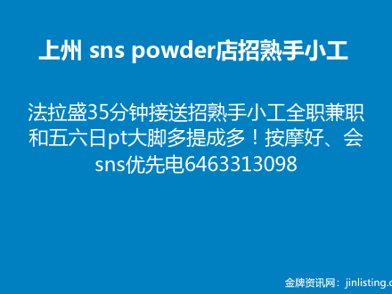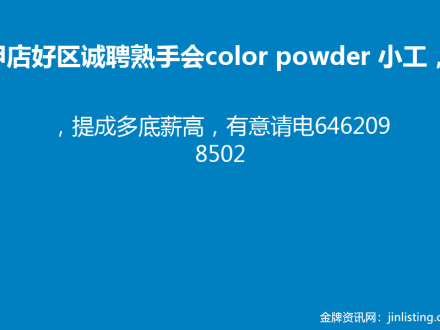 上州甲店好区诚聘熟手会color powder 小工,中工 6462098502