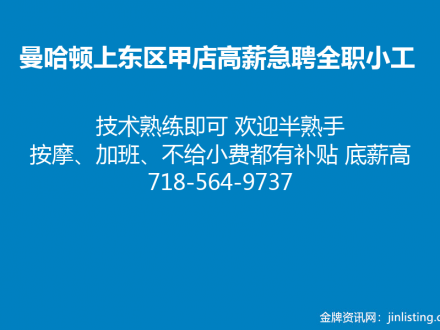 曼哈顿上东区甲店高薪急聘全职小工 718-564-9737