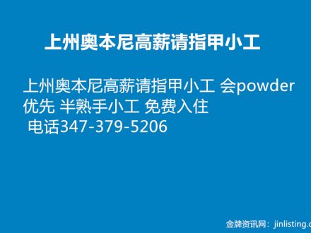 上州奥本尼高薪请指甲小工 347-379-5206
